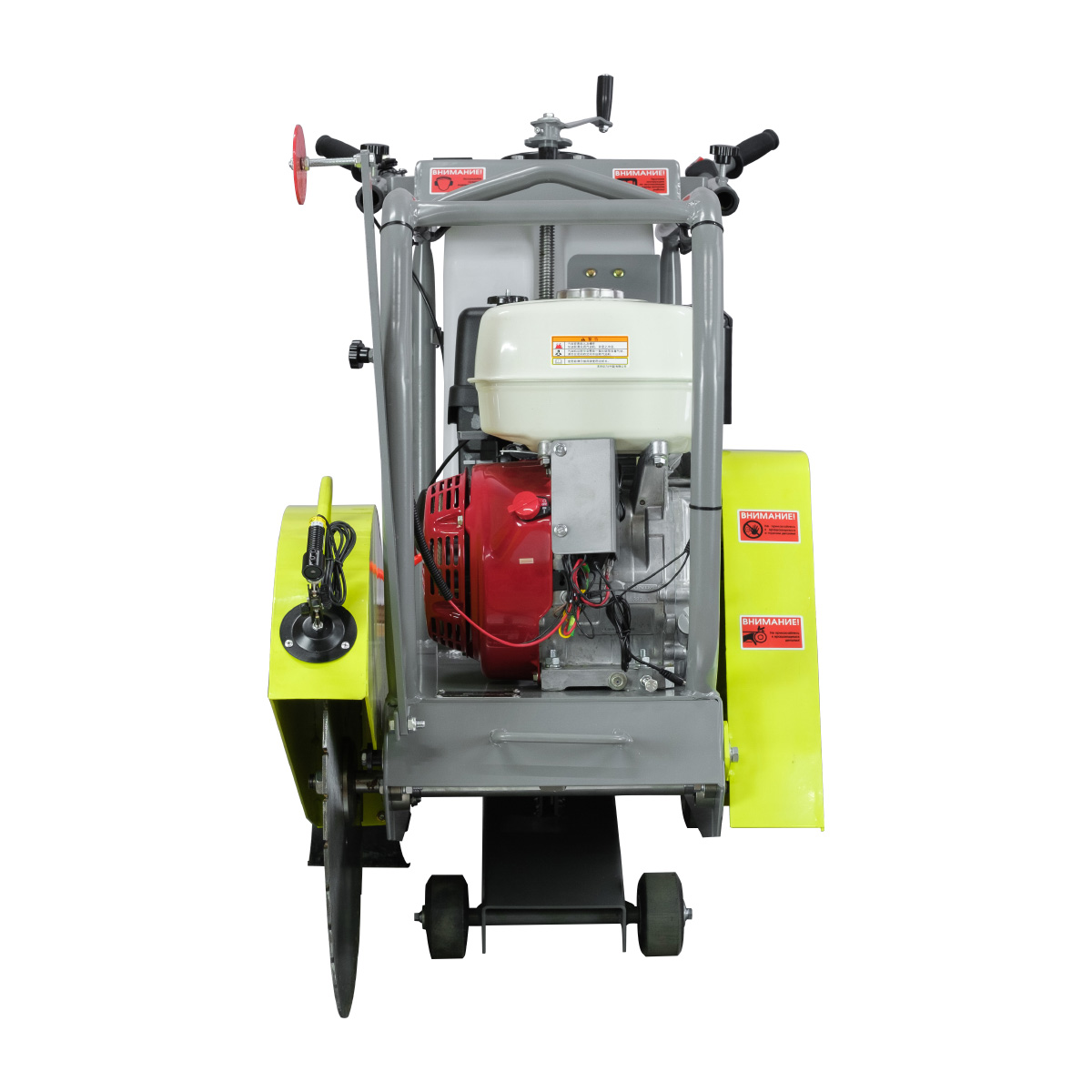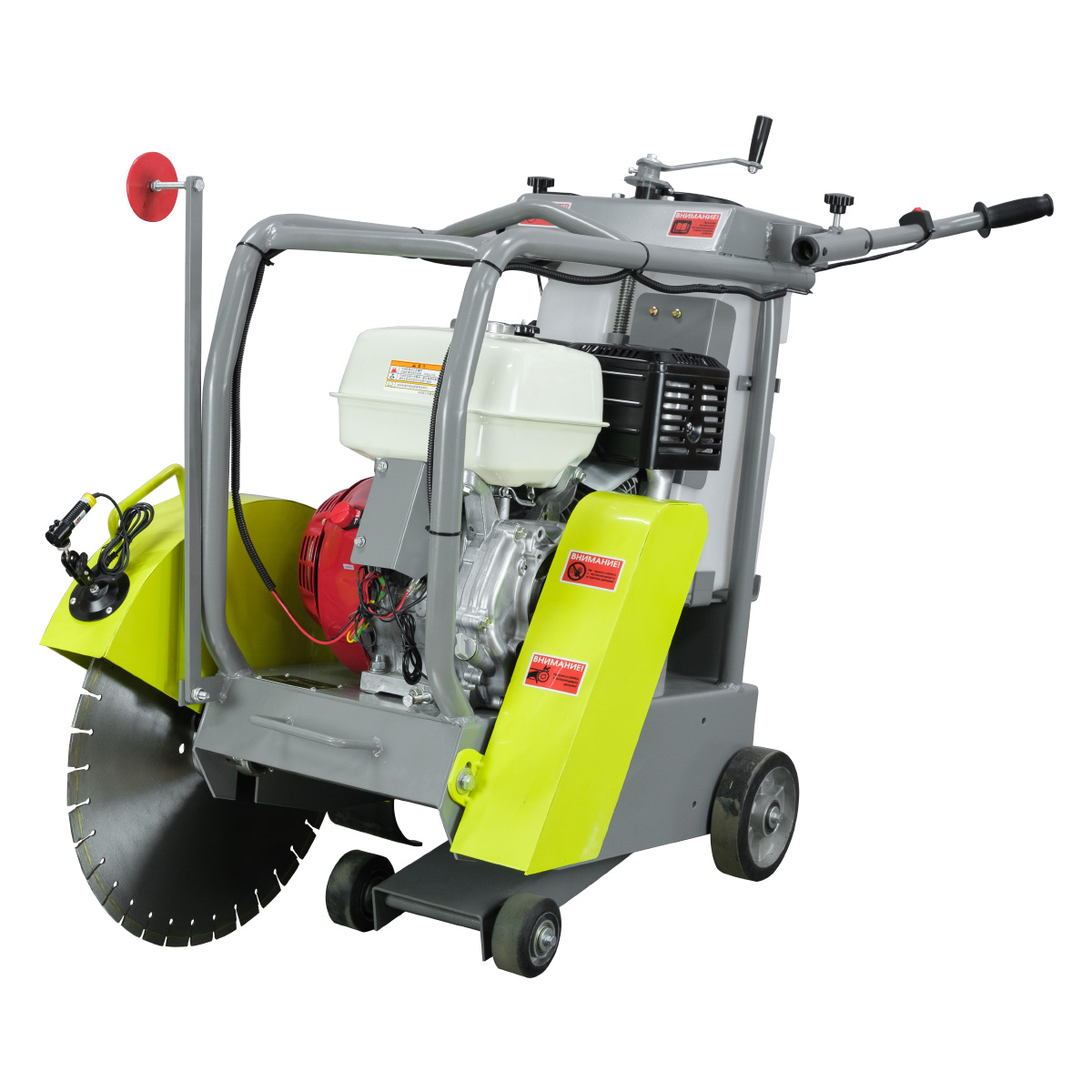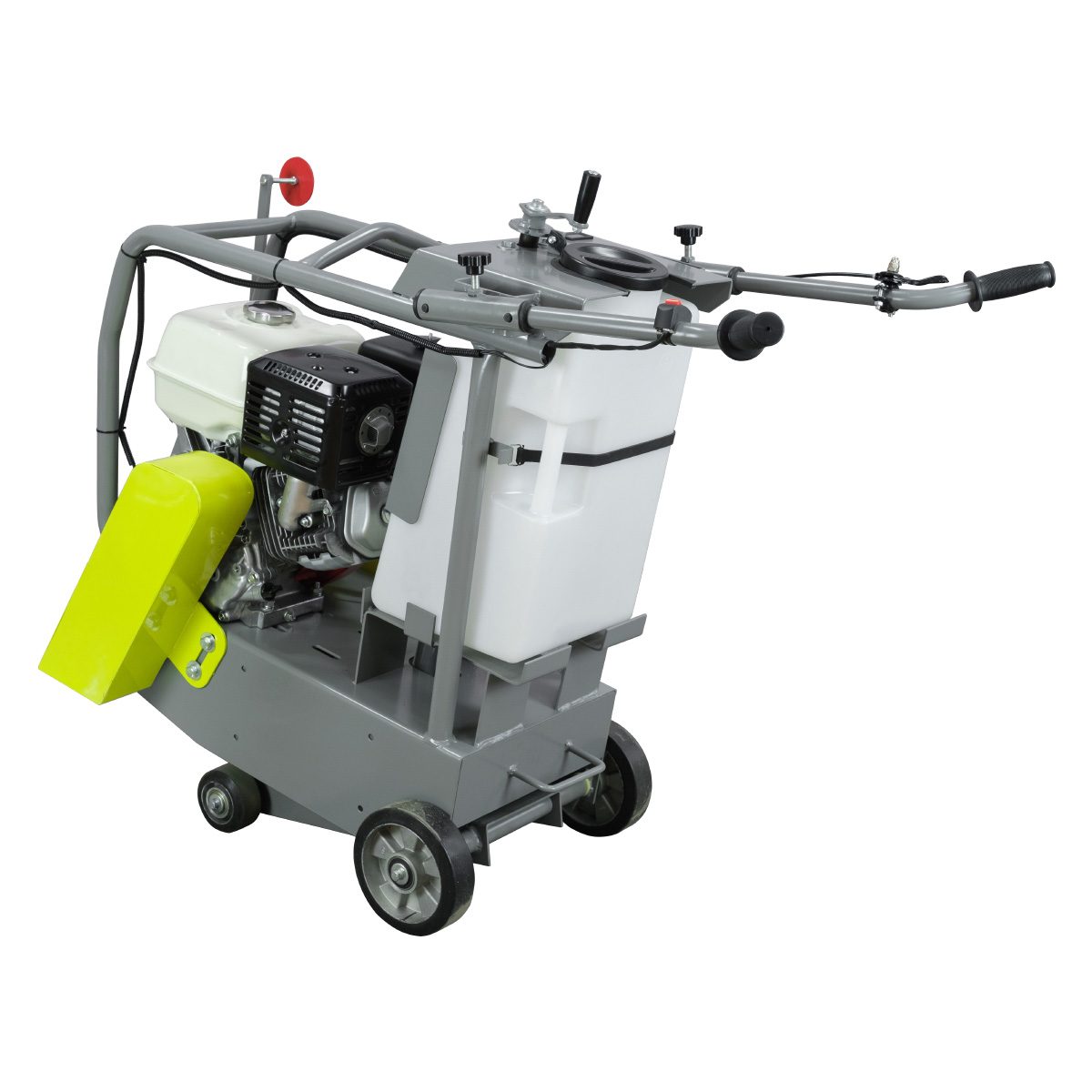 Агрегат оснащен двумя подводящими трубками для подачи воды из бака объемом 40 литров, что позволяет значительно снизить образование пыли и защитить двигатель от загрязнений. Регулировка глубины реза осуществляется плавно и точно, обеспечивая комфорт оператора. Широкий бак для воды обеспечивает длительную работу без перерыва.