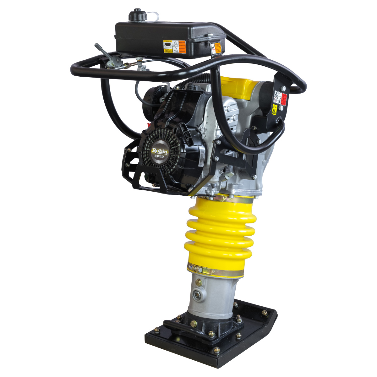 - Сертифицированный двигатель Robin ER12 мощностью 4 лошадиных силы разработан специально для вибрационных агрегатов. Наличие продвинутого воздушного фильтра и современного глушителя выделяет этот двигатель среди аналогов на рынке, делая его одним из наиболее эффективных бензиновых моторов;